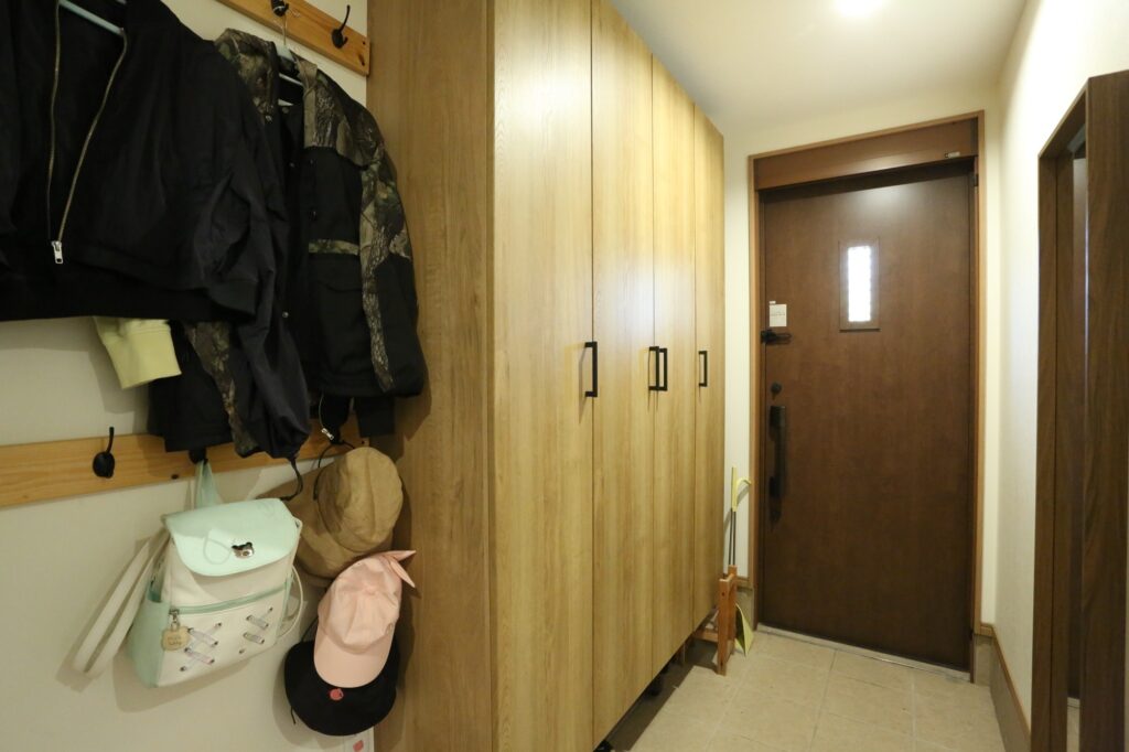 家族4人分の靴をしっかり収納できる、大きなシューズクロークを設置しました。