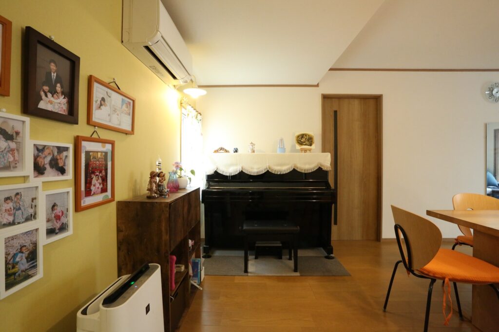 LDKに間取り変更したことで生まれた“ゆとり空間”を、ピアノのスペースとして活用。