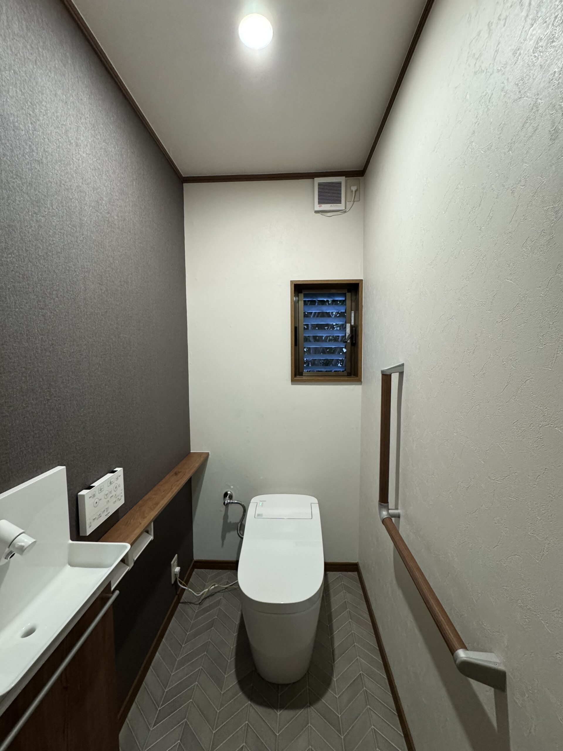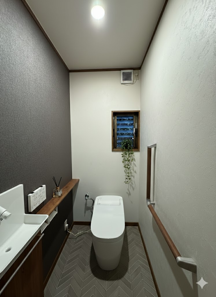 【50代リフォーム】ウォールナット×グレーで叶えるモダンなトイレ空間|岩出市 S様邸