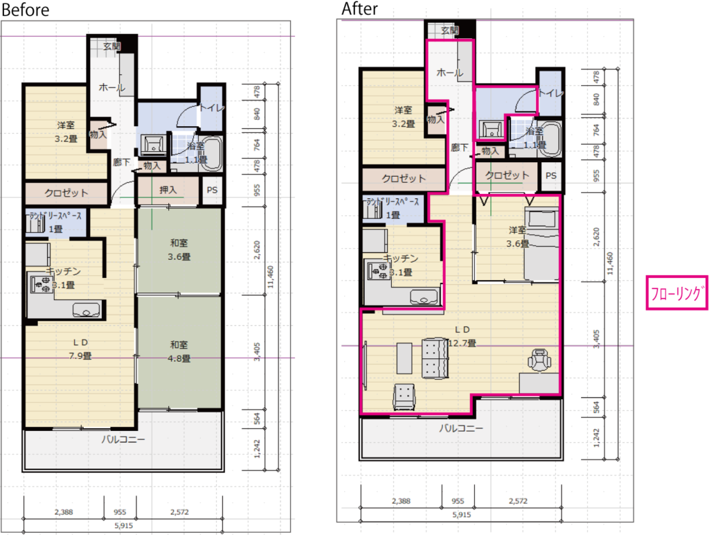 壁を壊し、光を呼び込む。和から洋へ、シームレスに繋がる広々リビングを実現したマンションリフォーム|岬町 M様邸